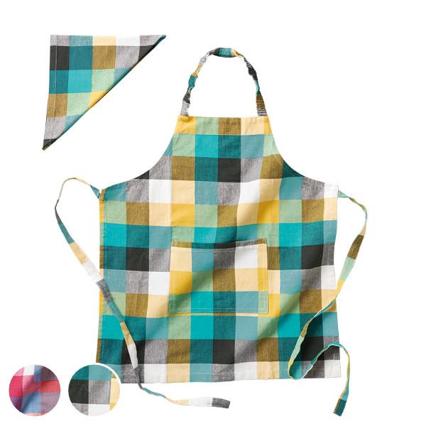 エプロン キッズ チェック柄 バンダナ付き クロエ 綿 子供用エプロン 子供エプロン 子どもエプロン 第一ネット 1 キッズ用エプロン 三角巾付き 100円 キッズエプロン 子ども用